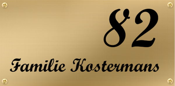 Messing naamborden worden met veel zorg gemaakt. Uw tekst wordt gelaserd gegraveerd in het zwart. Tevens krijgt uw messing naamplaatje een beschermde laklaag voor de levensduur van uw naambordje.